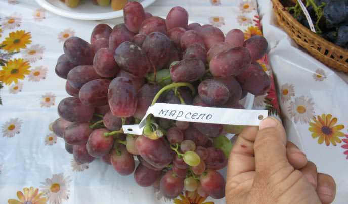 Гибридная форма винограда «Марсело» получена в результате скрещивания винограда сорта «Талисман» с сортом «Ризамат». Уход за виноградной лозой сорта «Марсело» не имеет существенных отличий от мероприятий по культивированию других сортов винограда. Поливы следует проводить по мере просыхания почвы. Внекорневые подкормки следует делать в несколько этапов: за десять дней до цветения, за неделю до созревания, а после сборки урожая подкармливать калийными удобрениями, которые благотворно влияют на повышение морозостойкости винограда.